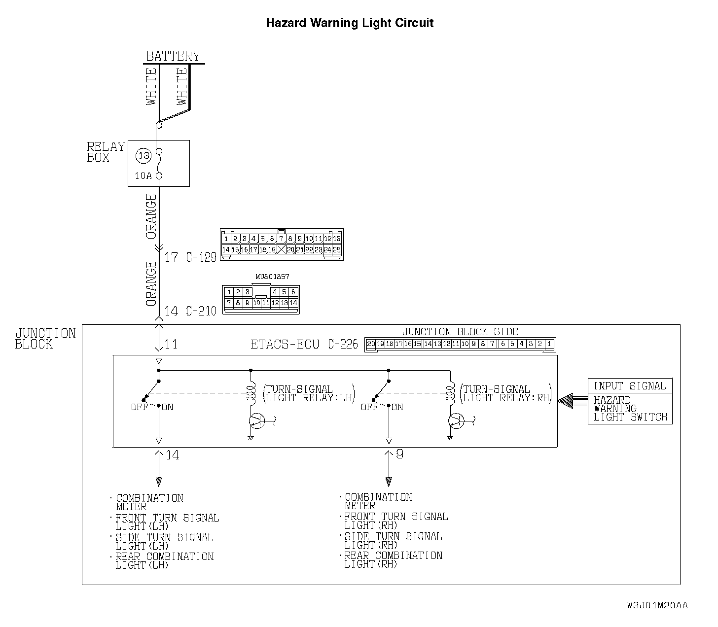 If the ETACS-ECU receives "ON" signal from the hazard warning light switch, the ETACS-ECU turns on the flasher timer (incorporated in the ETACS-ECU), thus causing the turn-signal lights to flash.
