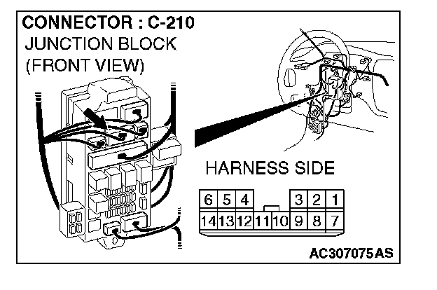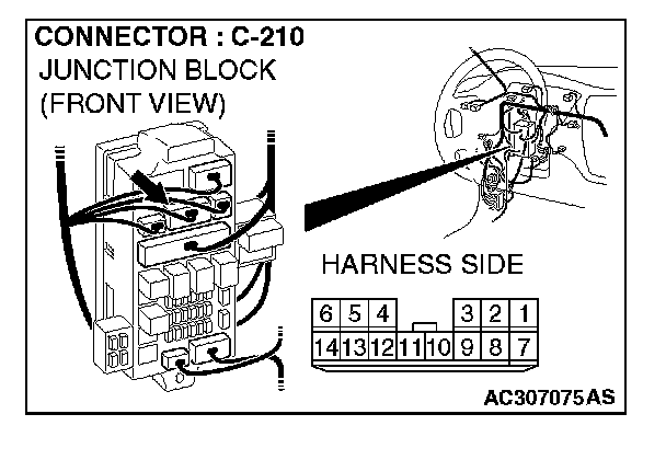 NOTE: Also check junction block connector C-210 and intermediate connector C-111 for loose, corroded, or damaged terminals, or terminals pushed back in the connector. If junction block connector C-210 or intermediate connector C-111 are damaged, repair or replace the damaged component(s) as described in Harness Connector Inspection.