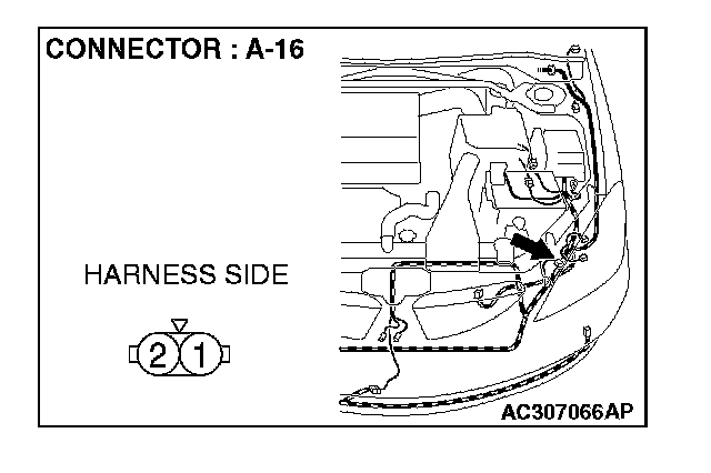 STEP 9. Check the wiring harness between front turn-signal light (LH) connector A-16 (terminal 1) and ground.