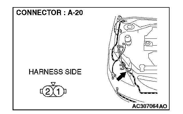 STEP 15. Check the wiring harness between front turn-signal light (RH) connector A-20 (terminal 1) and ground.