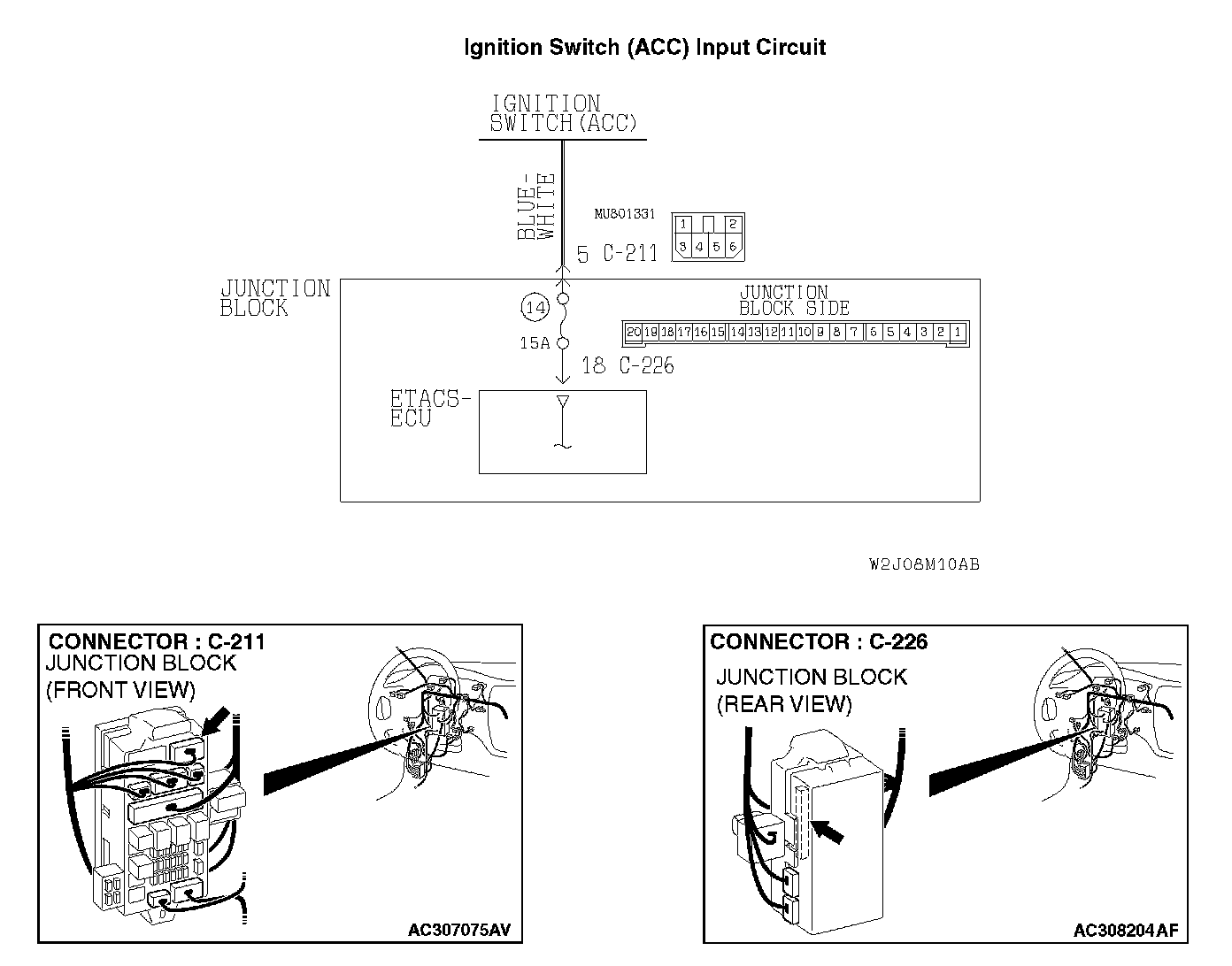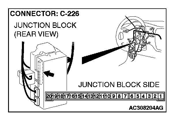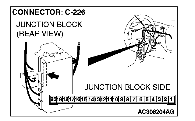 1. Disconnect ETACS-ECU connector C-226 and measure the voltage available at the junction block side of the connector.