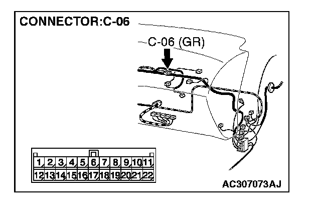 NOTE: Also check joint connector C-06 for loose, corroded, or damaged terminals, or terminals pushed back in the connector. If joint connector C-06 is damaged, repair or replace the damaged component(s) as described in Harness Connector Inspection.