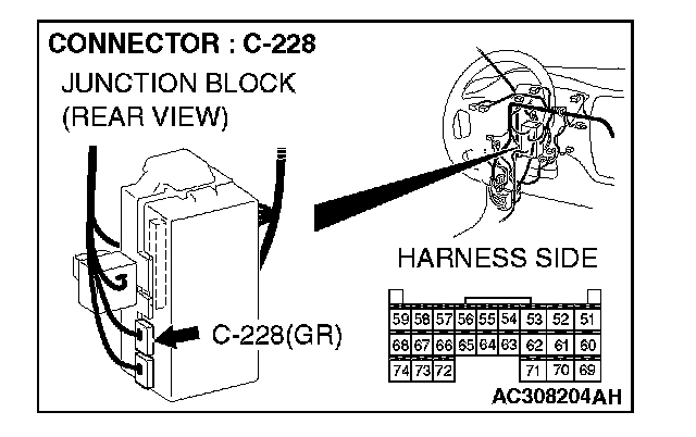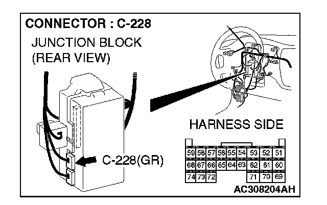 STEP 5. Check ETACS-ECU connector C-228 for loose, corroded or damaged terminals, or terminals pushed back in the connector.