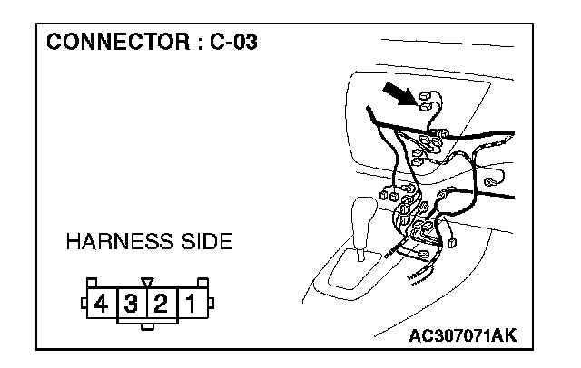STEP 4. Check the wiring harness between hazard warning light switch connector C-03 (terminal 2) and ground.