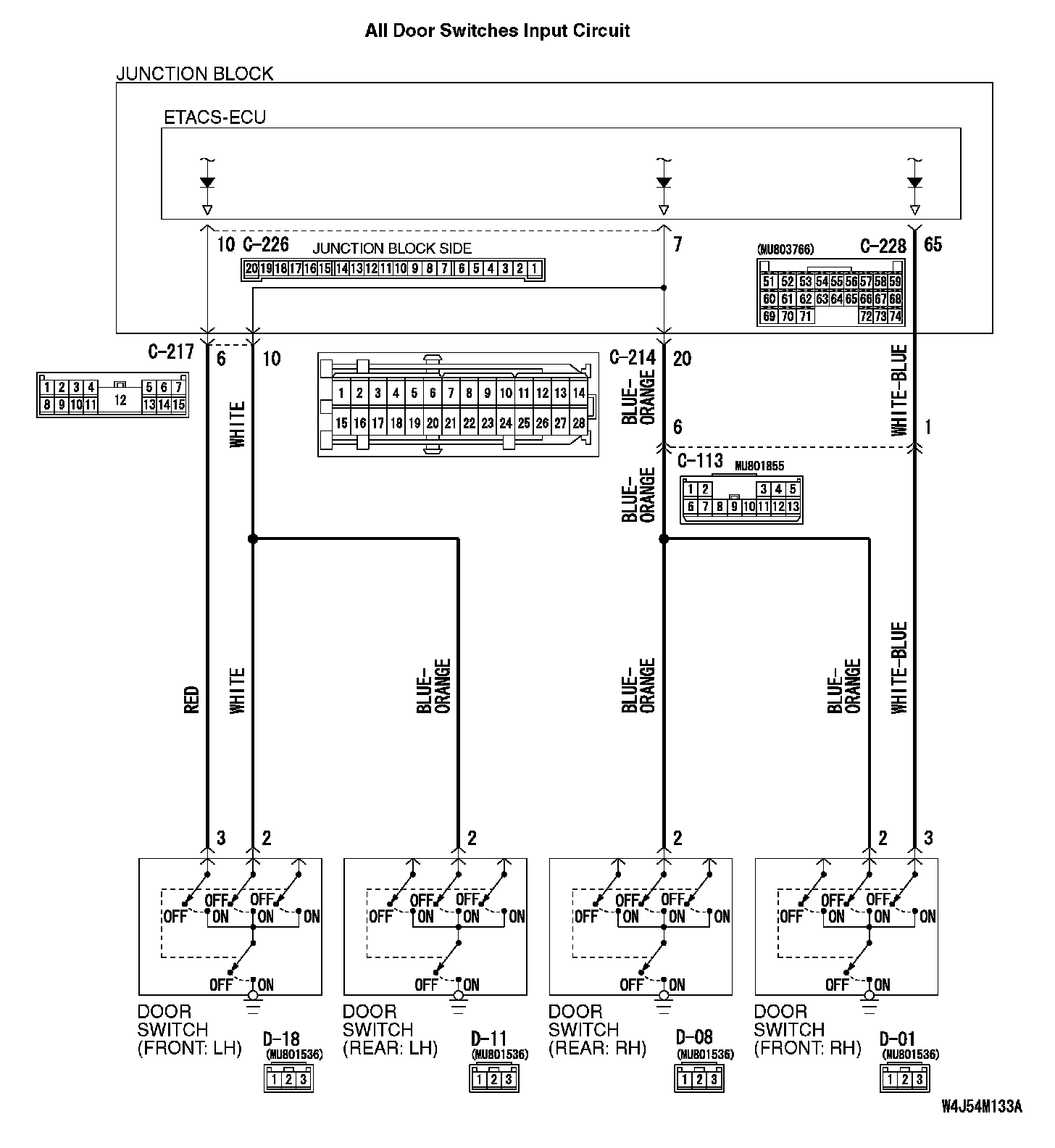 INSPECTION PROCEDURE N-4: ETACS-ECU does not receive any signal from all the door switches.All Door Switches Input Circuit Part 1: