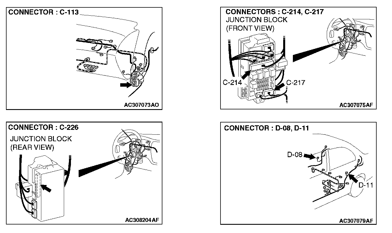 STEP 11. Check the wiring harness between rear door switch (RH) connector D-08 (terminal 2) and ETACS-ECU connector C-226 (terminal 7).