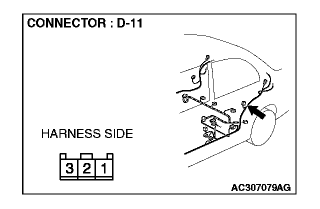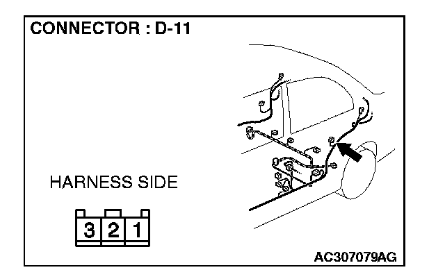 STEP 2. Check rear door switch (LH) connector D-11 for loose, corroded or damaged terminals, or terminals pushed back in the connector.