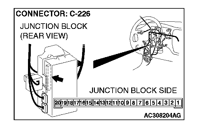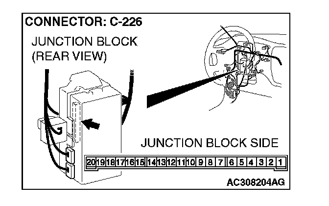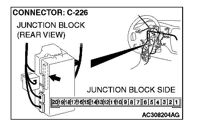 STEP 5. Check ETACS-ECU connector C-226 for loose, corroded or damaged terminals, or terminals pushed back in the connector.