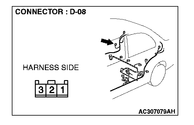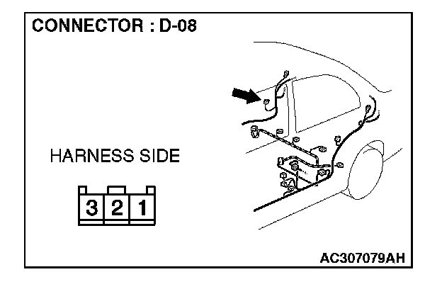 STEP 7. Check rear door switch (RH) connector D-08 for loose, corroded or damaged terminals, or terminals pushed back in the connector.