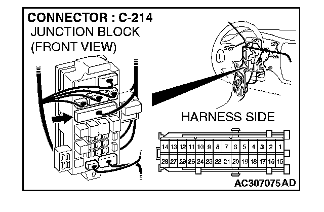 NOTE: Also check intermediate connector C-113 and junction block connector C-214 for loose, corroded, or damaged terminals, or terminals pushed back in the connector. If intermediate connector C-113 or junction block connector C-214 are damaged, Repair or replace the damaged component(s) as described in Harness Connector Inspection.