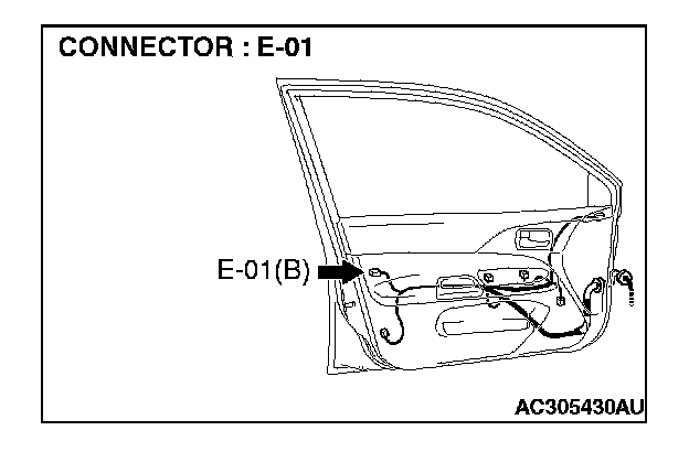 STEP 1. Check driver's door lock key cylinder switch connector E-01 for loose, corroded or damaged terminals, or terminals pushed back in the connector.