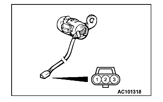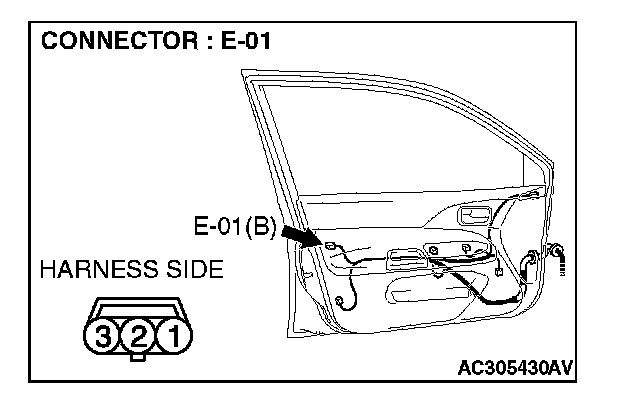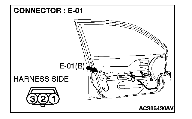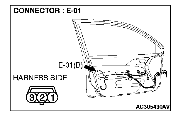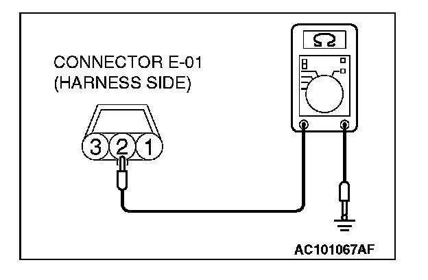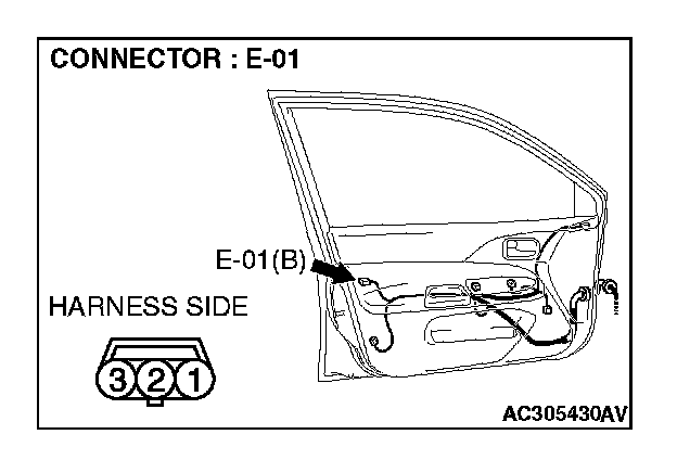 1. Disconnect driver's door lock key cylinder switch connector E-01 and measure the resistance available at the wiring harness side of the connector.