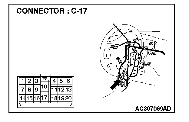 NOTE: Also check intermediate connector C-17 for loose, corroded, or damaged terminals, or terminals pushed back in the connector. If intermediate connector C-17 is damaged, repair or replace the damaged component(s) as described in Harness Connector Inspection.