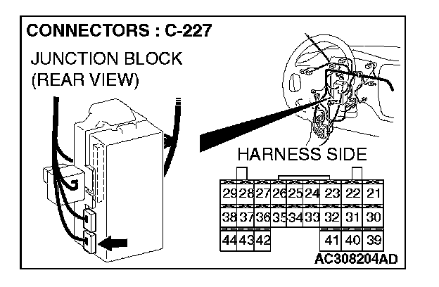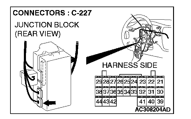 STEP 5. Check ETACS-ECU connector C-227 for loose, corroded or damaged terminals, or terminals pushed back in the connector.