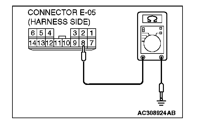 2. Measure the resistance value between terminal 8 and ground.