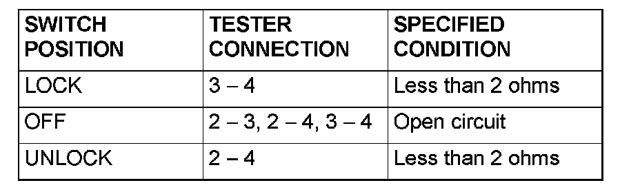 NO: The wiring harness may be damaged or the connector(s) may have loose, corroded or damaged terminals, or terminals pushed back in the connector. Repair the wiring harness as necessary. If the central door locking system works normally, input signal from the door lock switch should be normal.