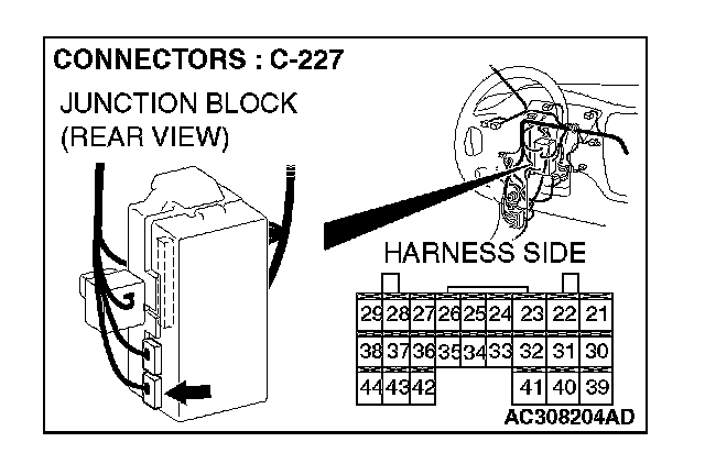 STEP 6. Check ETACS-ECU connector C-227 for loose, corroded or damaged terminals, or terminals pushed back in the connector.
