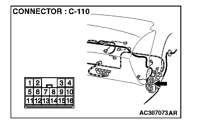 NOTE: Also check intermediate connector C-110 for loose, corroded, or damaged terminals, or terminals pushed back in the connector. If intermediate connector C-110 is damaged, Repair or replace the damaged component(s) as described in Harness Connector Inspection.