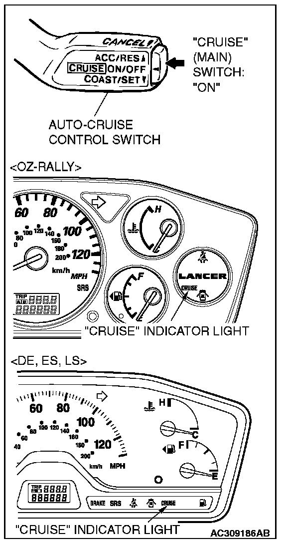 1. Switch "ON" the "CRUISE" (MAIN) switch.