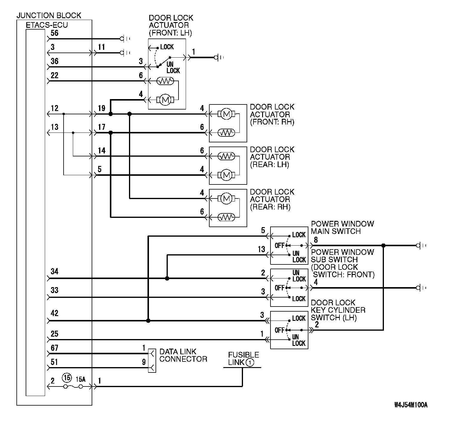 General Circuit Diagram For The Central Door Locking System: