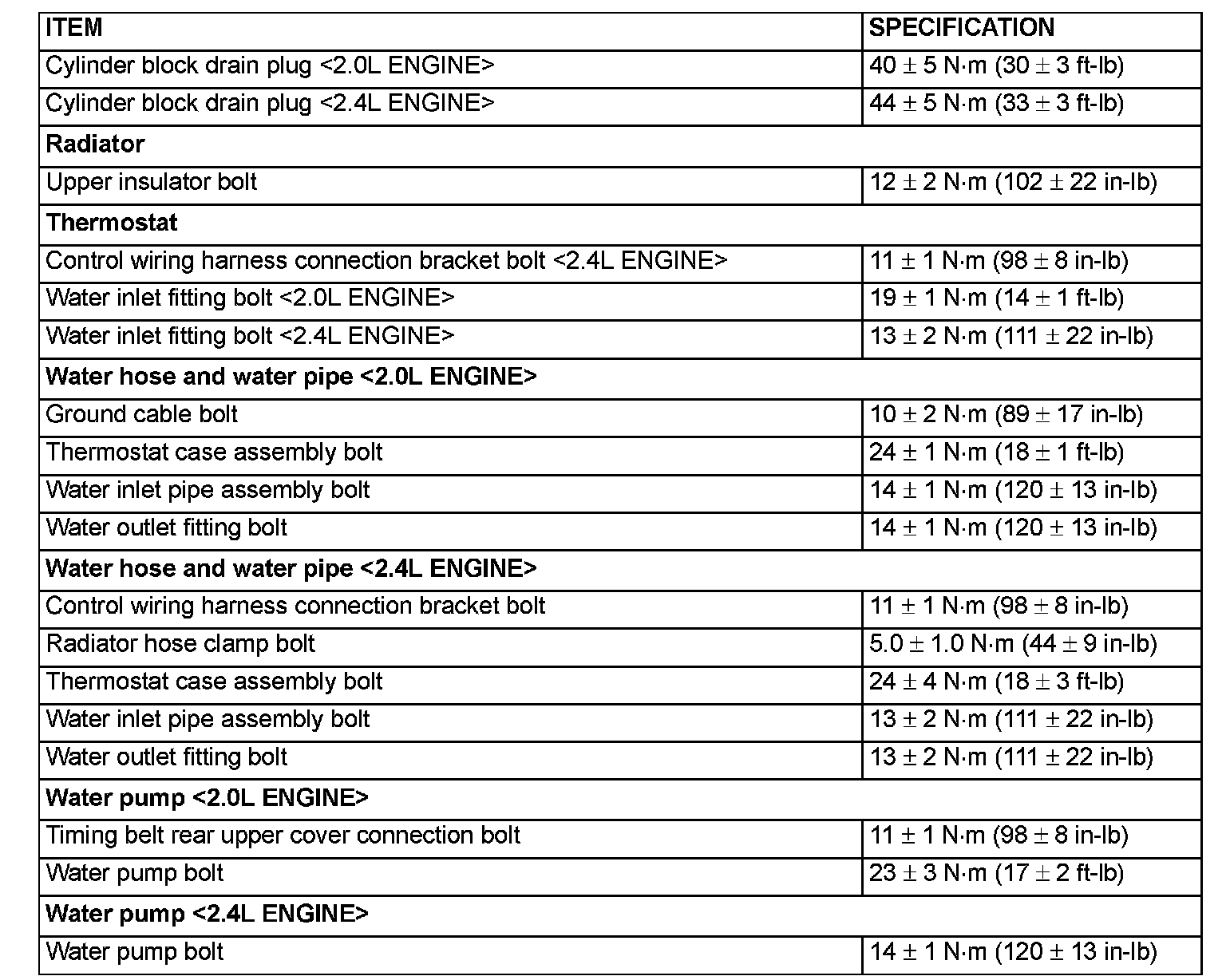 Fastener Tightening Specifications