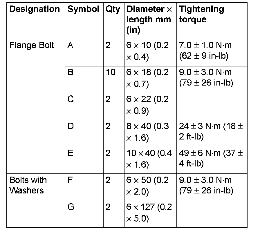 3. Using the letter symbols in the table shown, install the upper oil pan using the correct bolt. Refer to the table for proper torque.