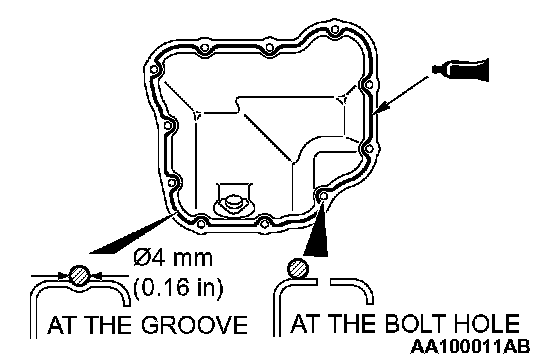 2. Apply sealant on the mounting surface of upper oil pan without any gap as indicated in the figure, and install oil pan on cylinder block.