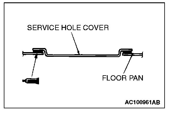 7. Apply the specified sealant to the contact surfaces of the service hole cover and the floor pan, and install the service hole cover.