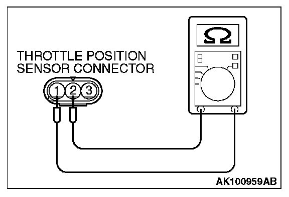 3. Measure resistance between the throttle position sensor side connector terminal No. 1 and terminal No. 2.