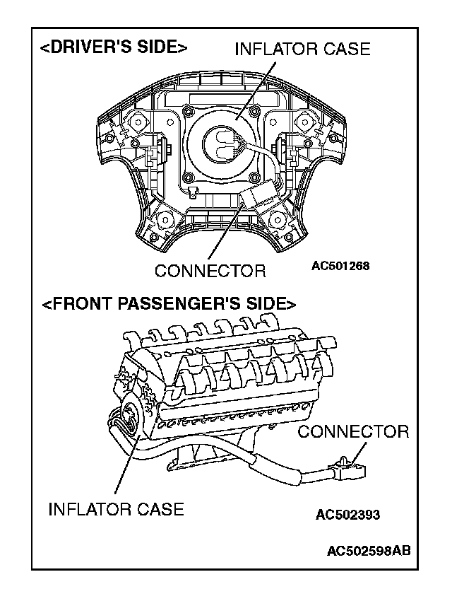 3. Check the air bag inflator case for dents, cracks or deformation.