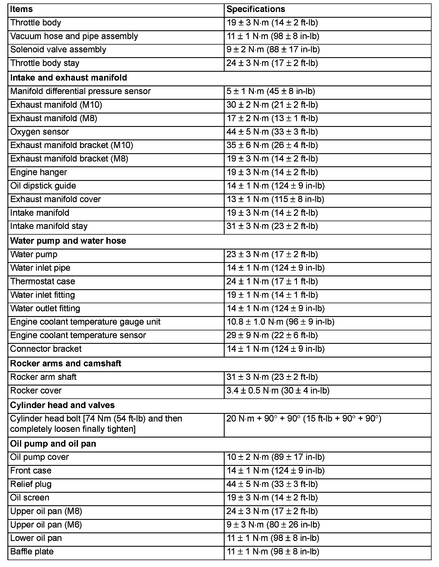 Torque Specifications