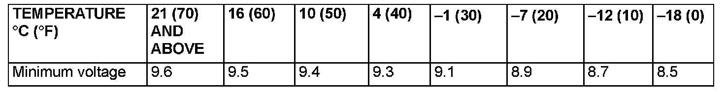 4. Compare the measured value with the minimum voltage. (See LOAD TEST CHART).