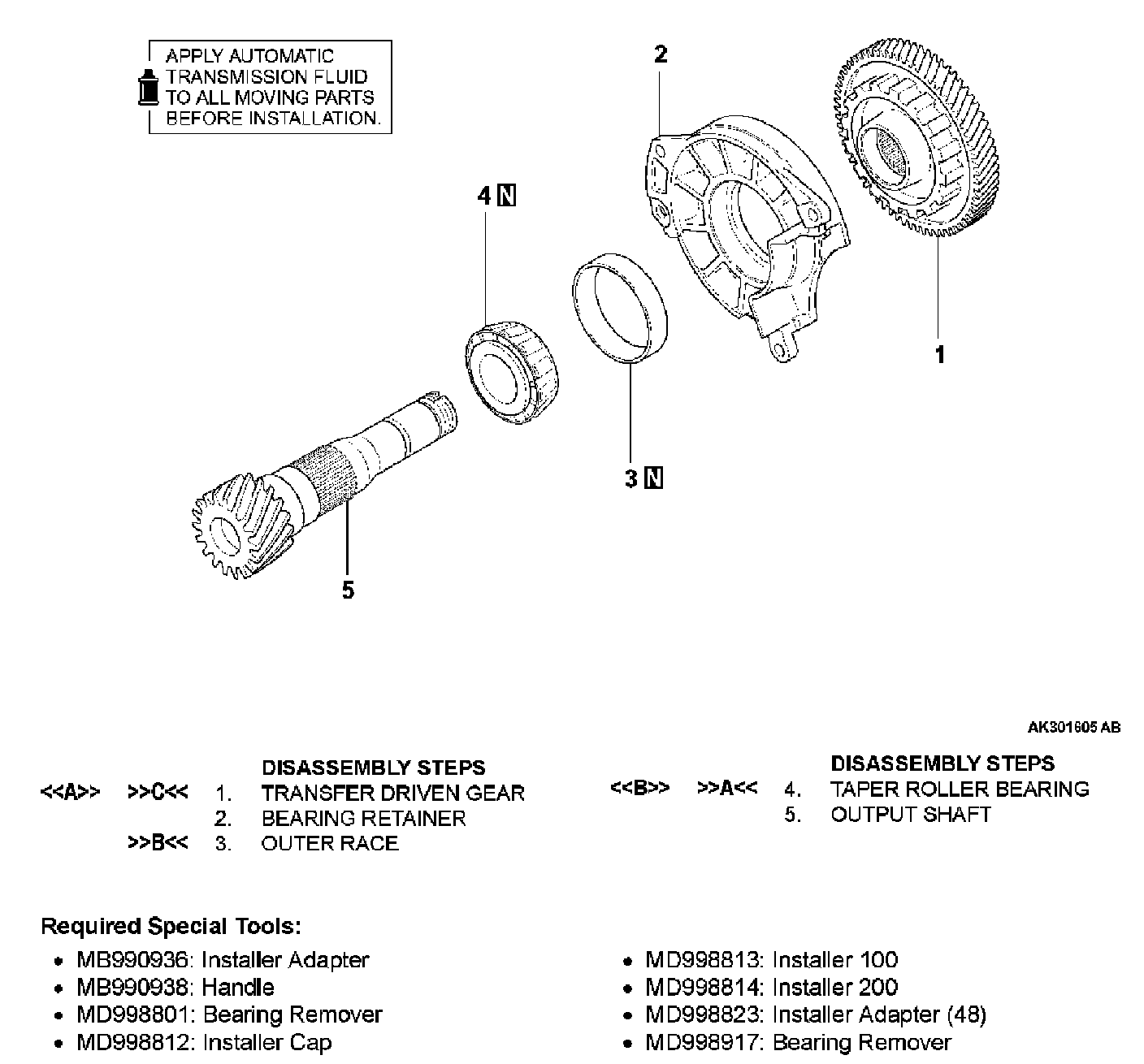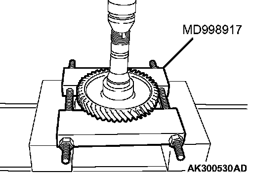 1. Support the transfer driven gear with general service tool or special tool MD998917, and then set them on the press.