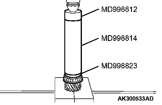 2. Using special tools MD998823, MD998812 and MD998814, press in the taper roller bearing.