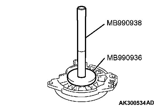 Use the special tools MB990936 and MB990938 to tap the outer race in the bearing retainer.