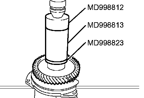 2. Using special tools MD998823, MD998812 and MD998813, press in the transfer driven gear.