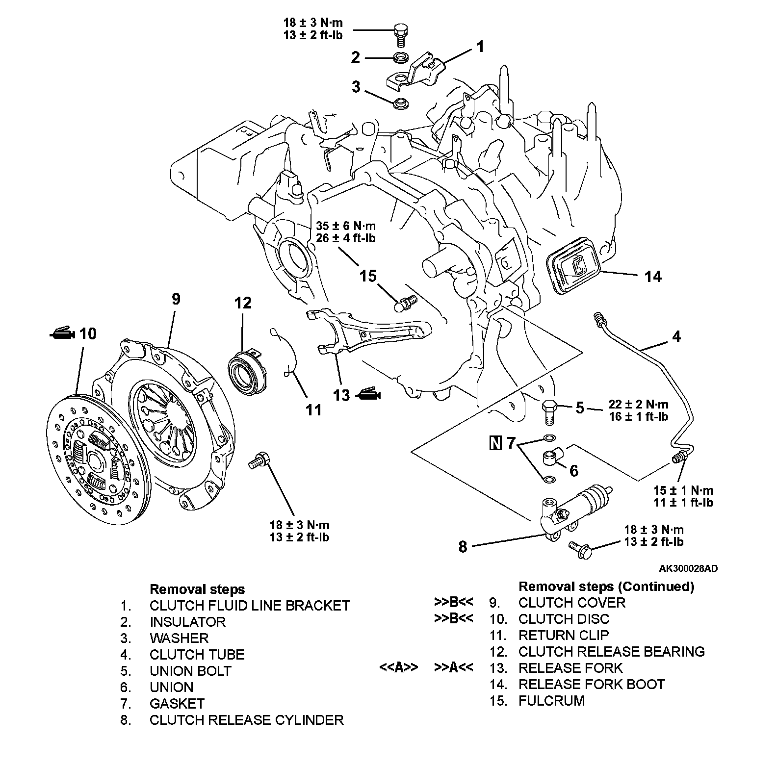 >>B<< CLUTCH DISC AND CLUTCH COVER INSTALLATION