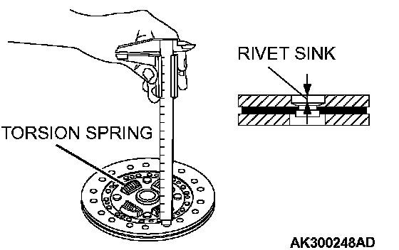 2. Measure the rivet sink. Replace the clutch disc if it is below the limit.