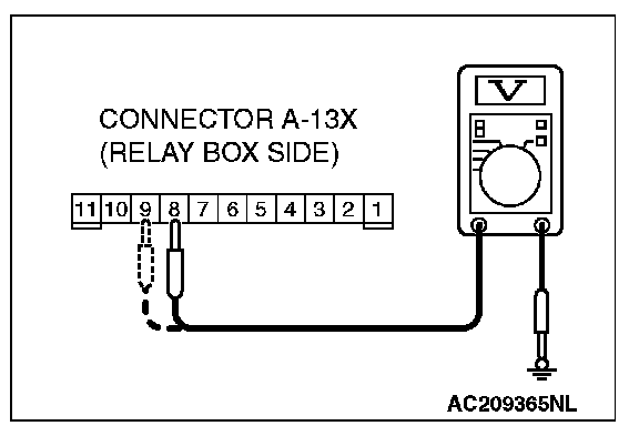 2. Measure the voltage between terminal numbers 8 and ground, and also between terminal 9 and ground.