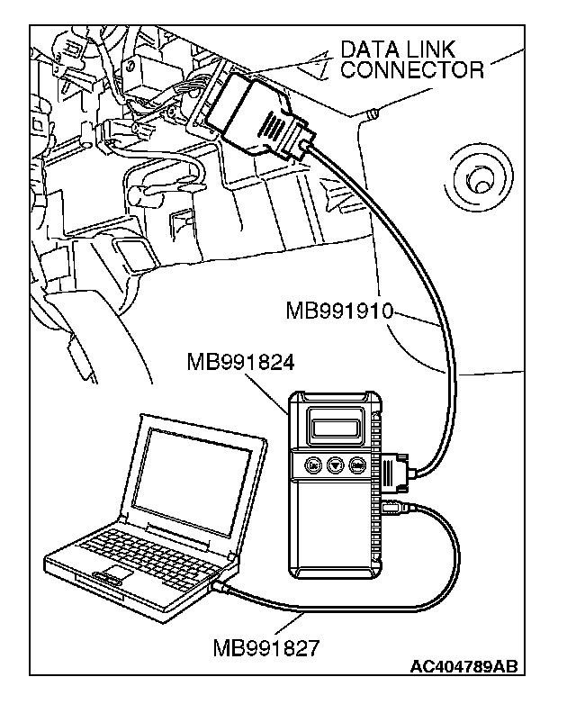 1. Connect scan tool MB991958 to the data link connector.