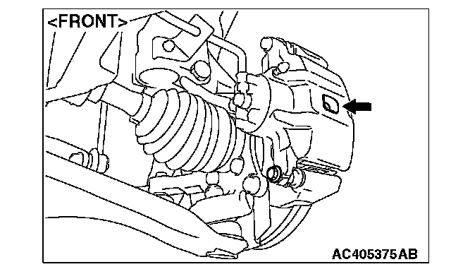 Check the brake pad thickness through the caliper body check port.