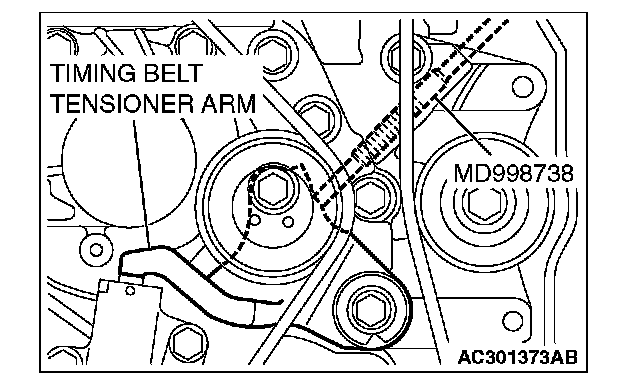 3. Screw in special tool MD998738 until it contacts the timing belt tensioner arm.