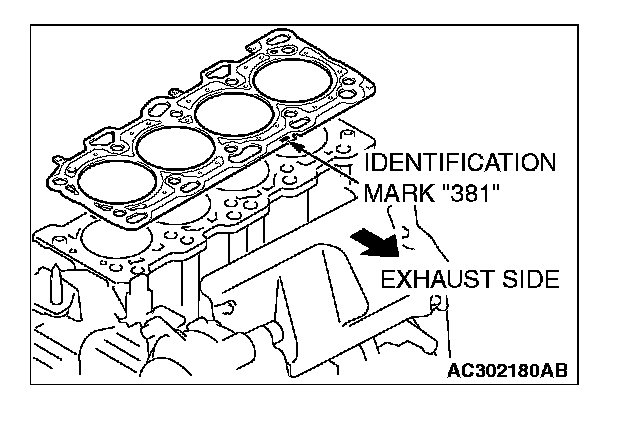 2. Assemble to the cylinder block so the cylinder head gasket identification mark of "381" is at the top surface and on the exhaust side.