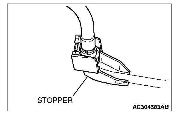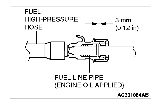 CAUTION: After connecting the fuel high-pressure hose, slightly pull it to ensure that it is installed securely. Also confirm that there is a play approximately 3 mm (0.12 inch). Then install the stopper securely.