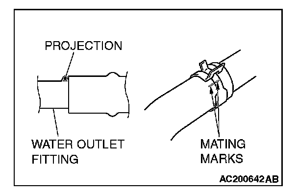 1. Insert radiator upper hose until it contacts the projection on the water outlet fitting.
