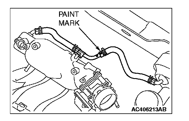Insert the vacuum hose with its paint mark facing upward.