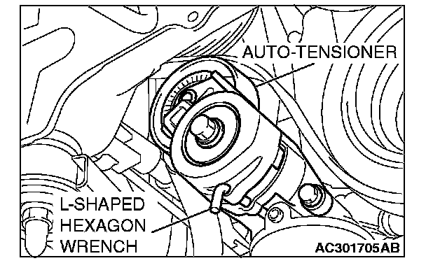 3. Insert an L-shaped hexagon wrench, etc. into the hole to secure its position, and then remove the drive belt.