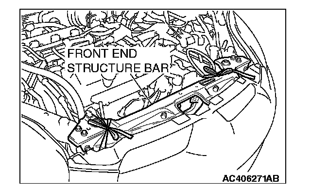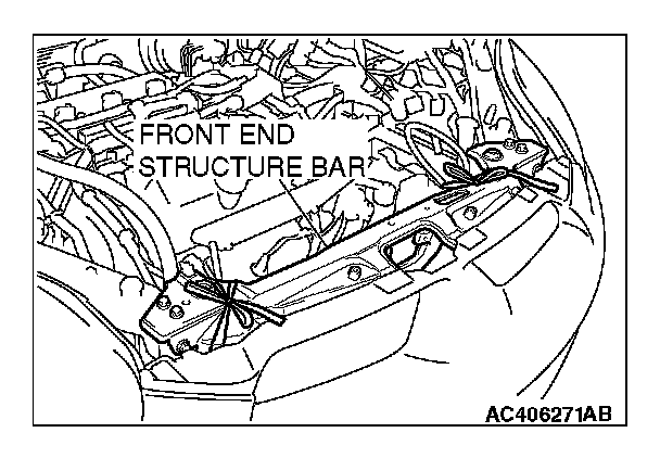 2. Remove the cord securing the A/C condenser and the front end structure bar