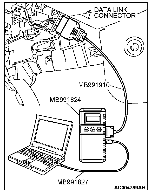 1. Connect scan tool MB991958 to the data link connector.