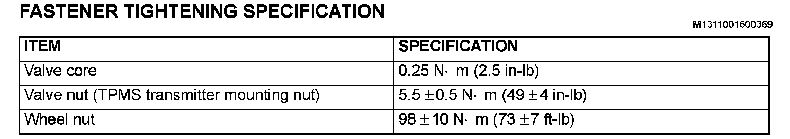 FASTENER TIGHTENING SPECIFICATION: